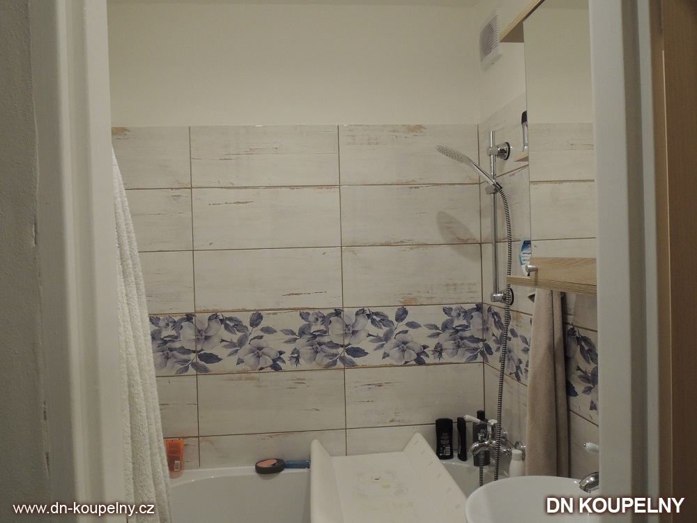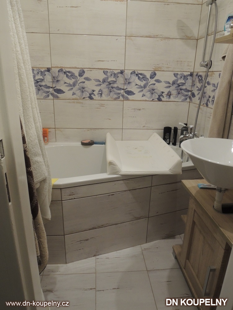 Renovace koupelny byla uskutečněna bez bourání bytového jádra v panelovém domě na sídlišti Ostrava Hrabůvka. Obkladačky do koupelny byly zvoleny v rustikálním stylu. Také koupelnový nábytek a koupelnové vybavení tomu bylo přizpůsobeno. Koupelna bez bourání je velmi běžnou a rychlou formou renovace koupelny. Fotografie mnoha dalších způsobů renovace koupelen naleznete v naší koupelnové galerii a možná vám pomůžou v inspiraci při plánování renovace vaší koupelny.