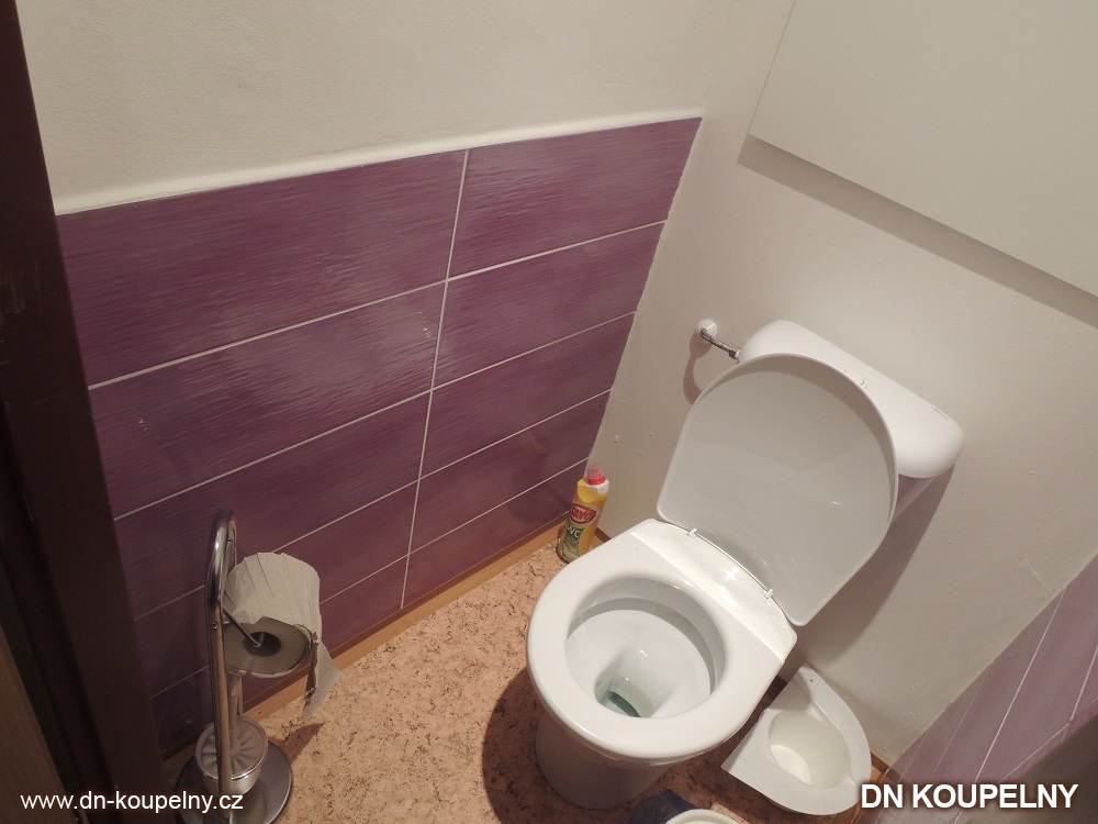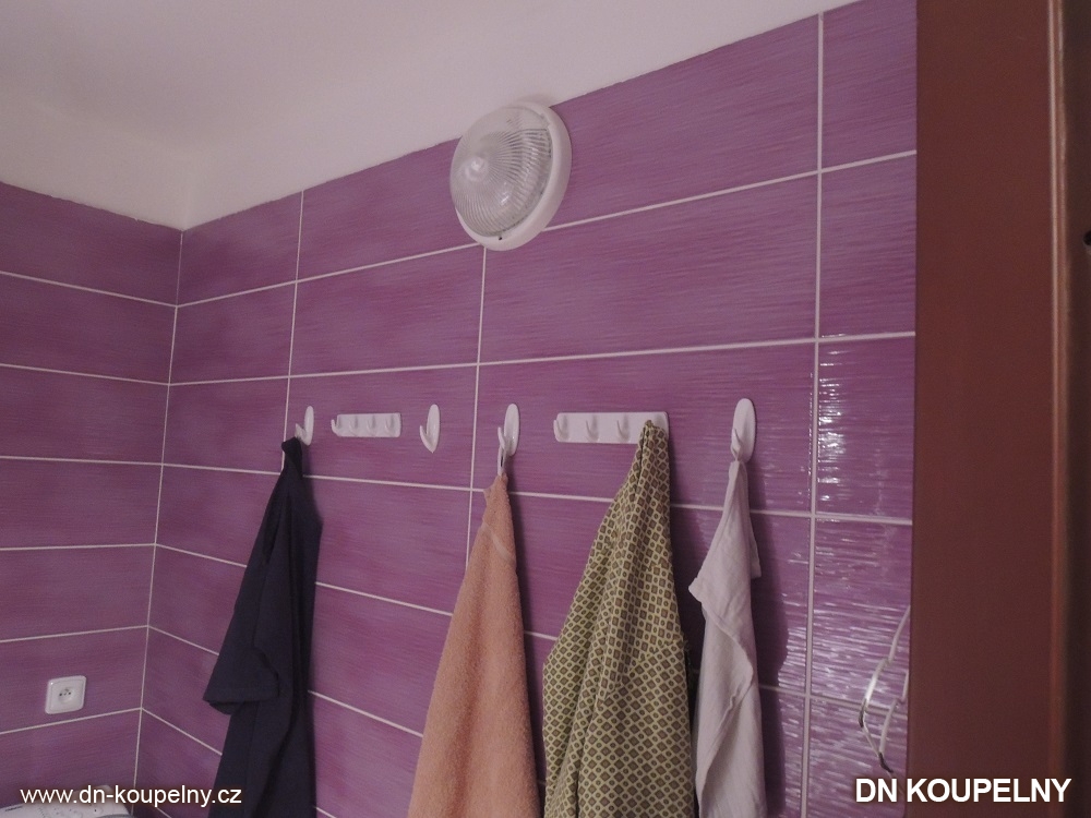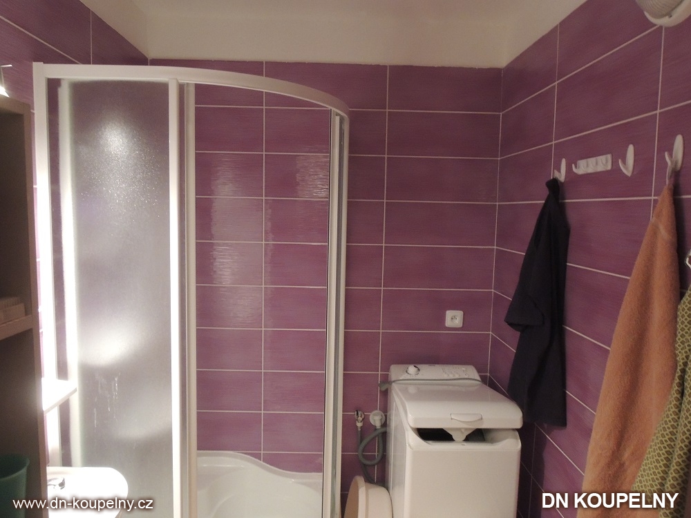 Další ukázka koupelny z naší bohaté fotogalerie. Realizace koupelny a WC proběhla v panelákovém bytě na ul. O. Jeremiáše, Ostrava Poruba. Jak je vidět z ukázky, při této realizaci koupelny byly použity neobvyklé obklady. Volba barevného odstínu je velmi individuální a záleží na vkusu zákazníka. Také zde vidíte, jak vypadá lino do koupelny místo dlažby. Ukázky koupelen v paneláku po dokončení jejich realizace jsou k vidění ve fotogalerii koupelen.