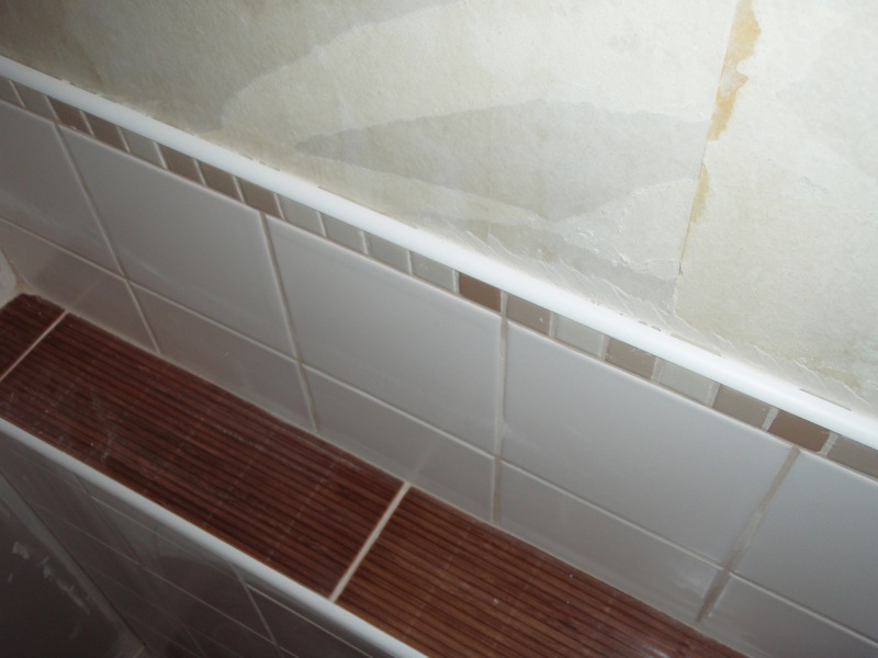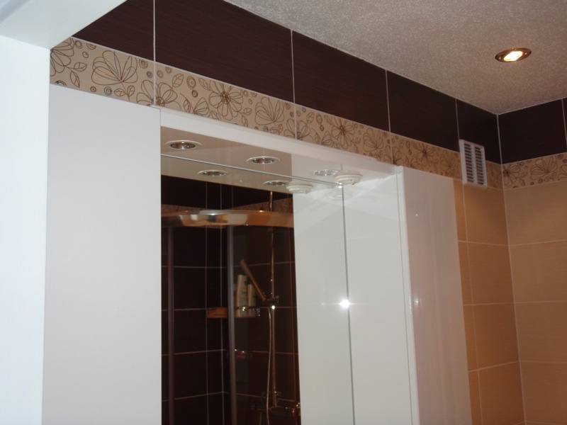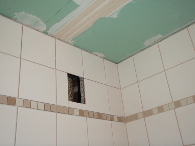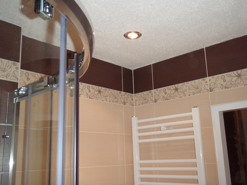 - Úprava stěn a stropu nad obklady strukturálním bílým nátěrem.