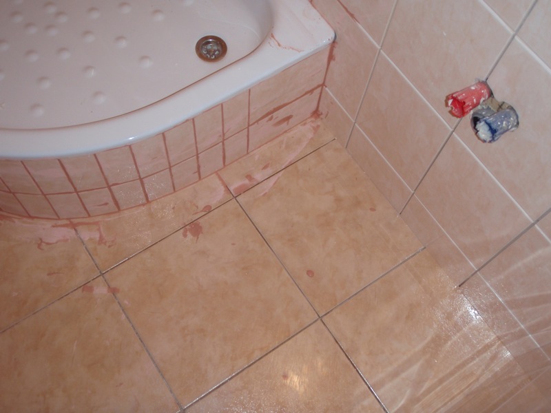 - Úprava podlahy v koupelně a WC penetrací a lepícím tmelem.