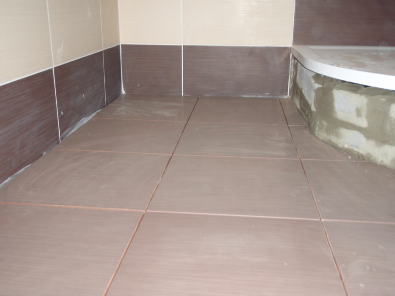 - Pokládka keramické dlažby v koupelně a WC.